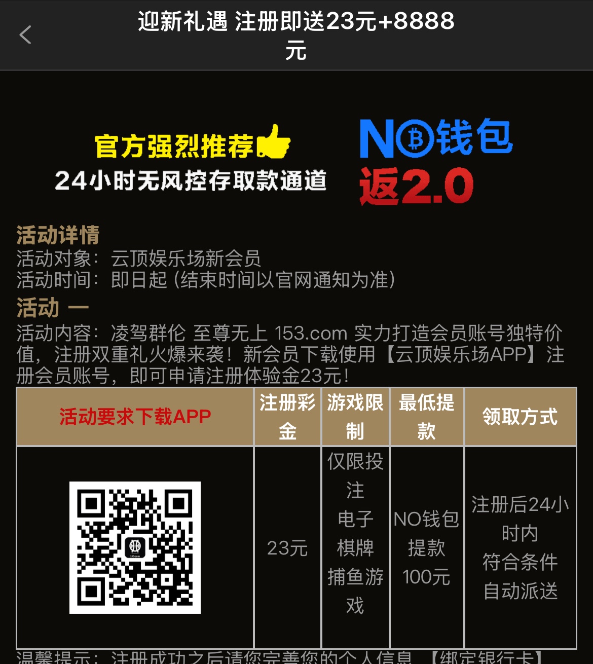 注册就送23还有以小博大 存20送23