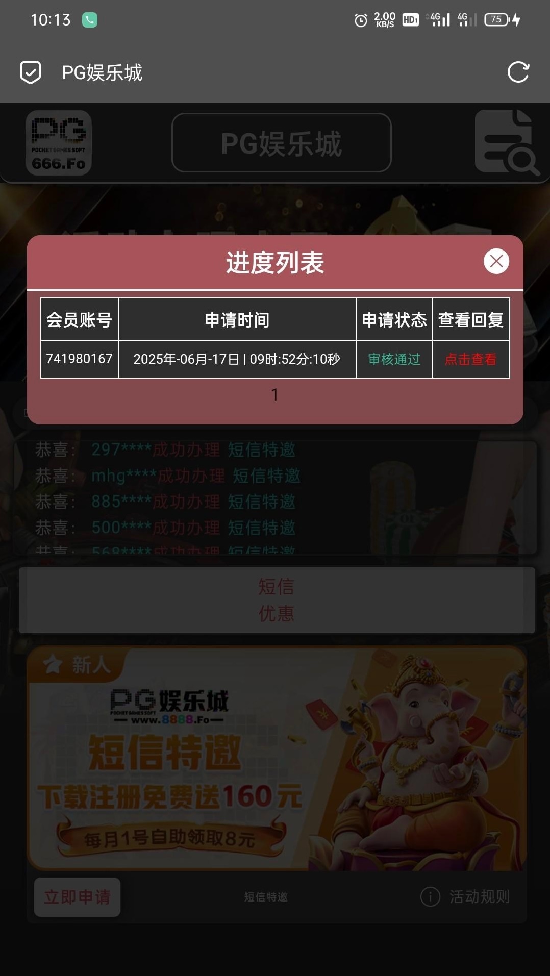 www.555.fo 没收到短信 直接申请的 没注册过的可以试试 特邀送8