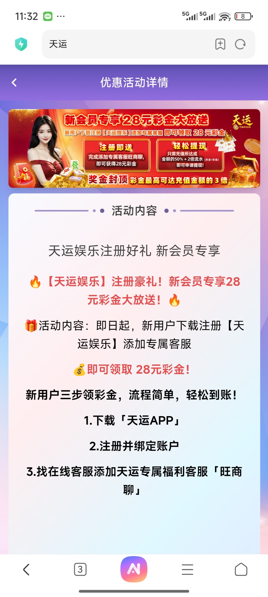 【天运娱乐】注册送28