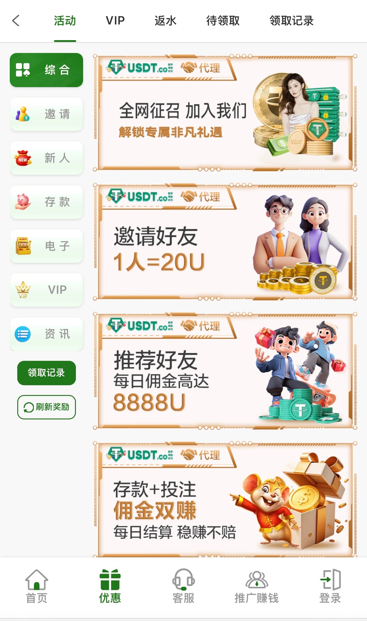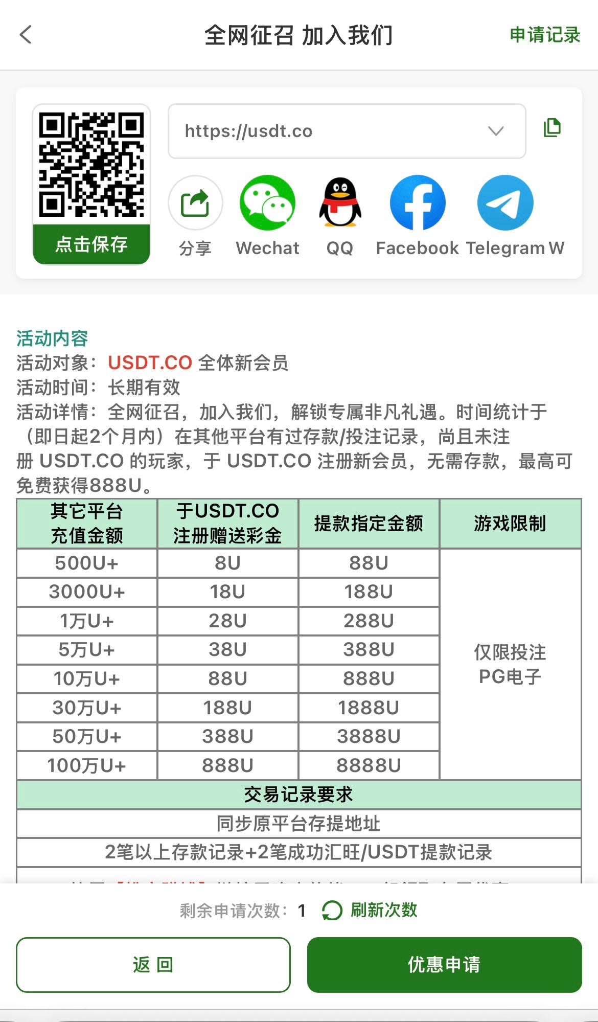 新活动看其他平台充值额度申请彩金。白嫖不建议充值
