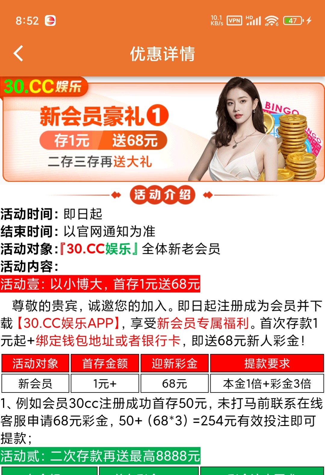 新老用户都可以参加 以前好像谁发过参加过app1+68活动 还有钱包首充100送88 刷完水就跑了 出款秒了