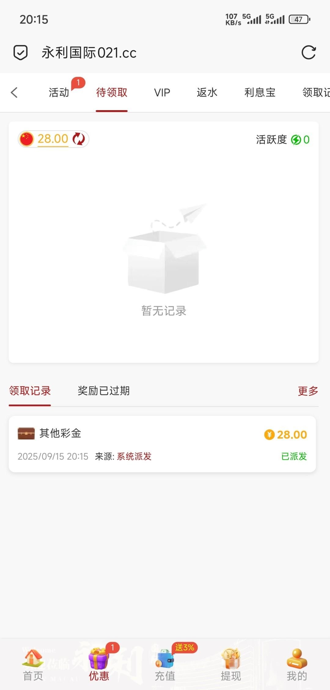 有漏接电话的可以去找客服试试,没充过。没打出来,有就有,没有勿喷021.cc