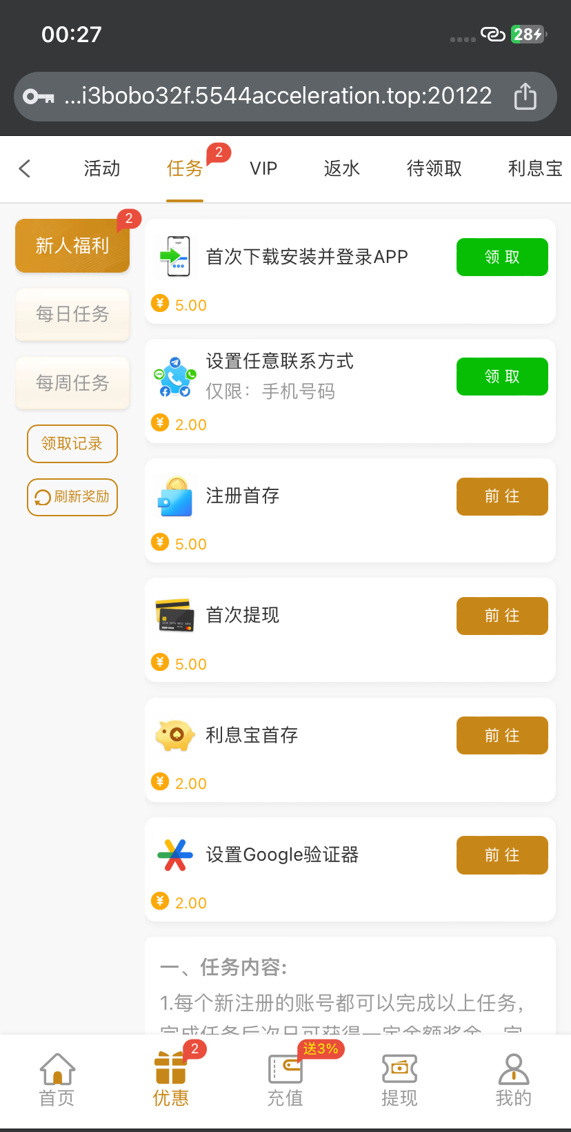 新葡京5544 完善任务得9块 5544.cc 下载app得5 绑定手机号得2 验证谷歌得2
