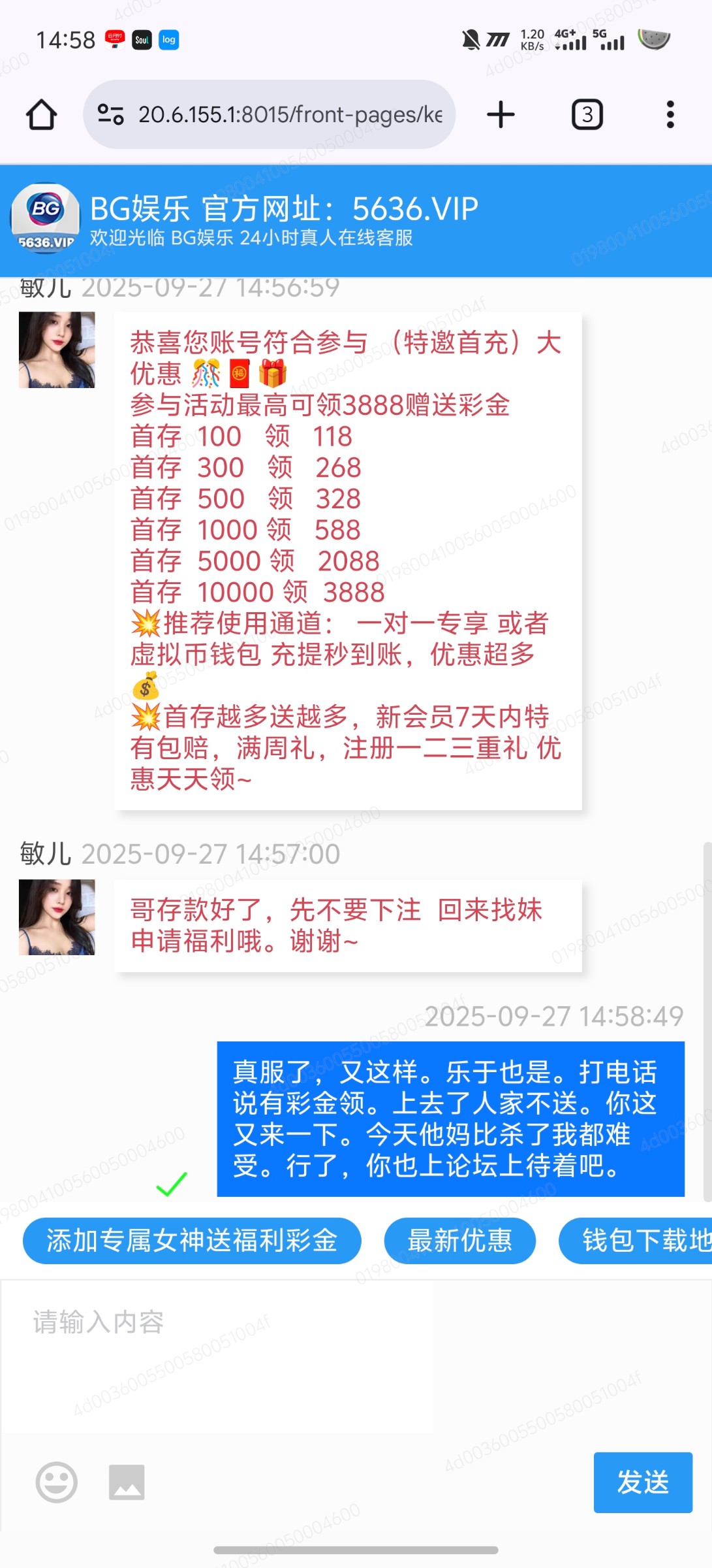 跟乐鱼平台一个逼样。还是充值才送,打电话说免费送。今天他妈是咋了?都他妈是这种。