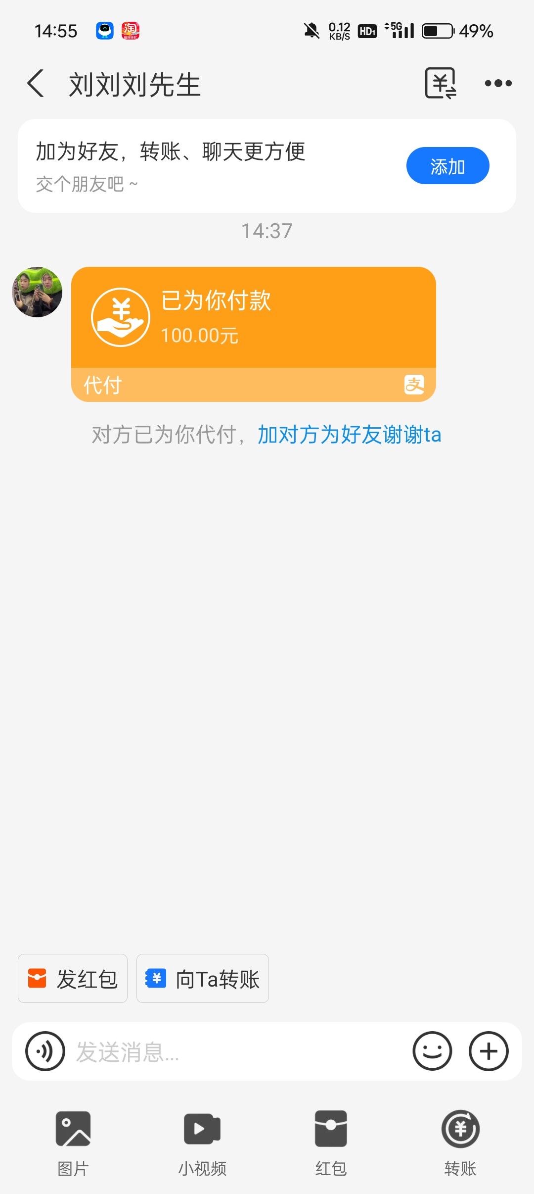 只是把他代付成功的链接发给你了吧?