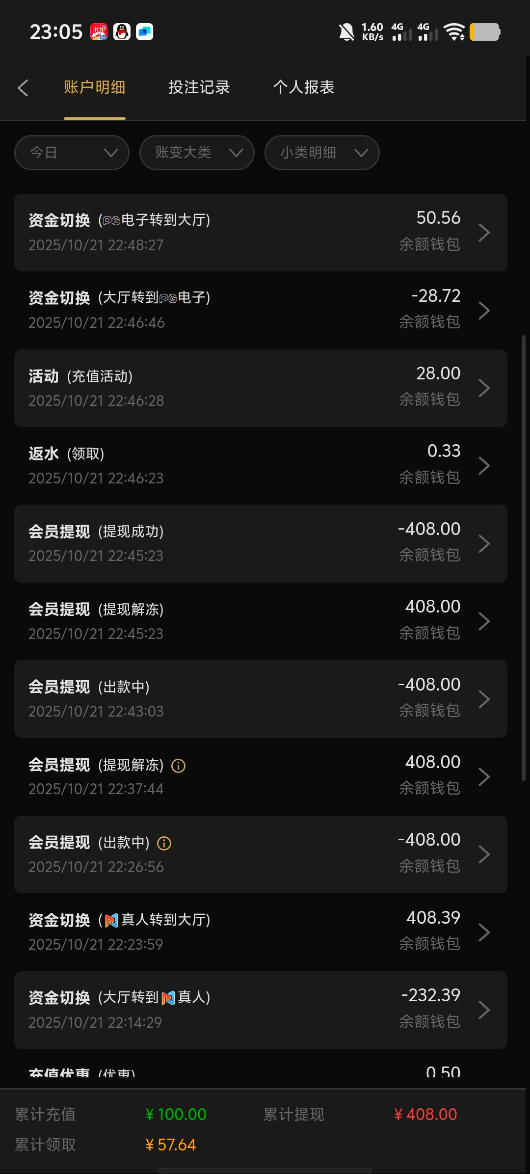 电子打到126充值了100打真人打到408第一次提现退回了还以为黑了问客服叫我重新提小吃一点了