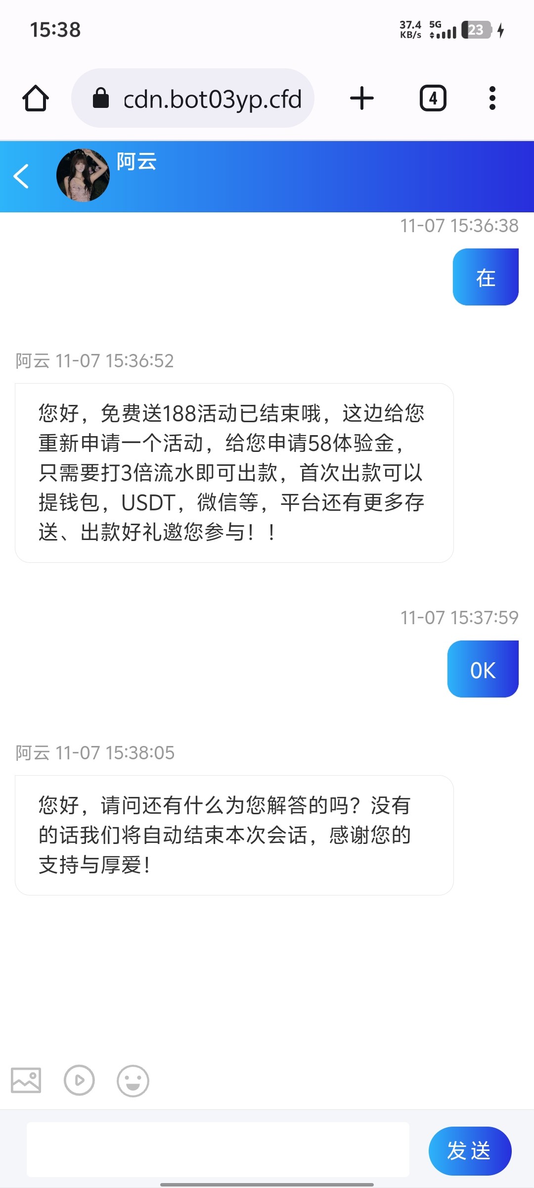 接到电话彩金 没打出来